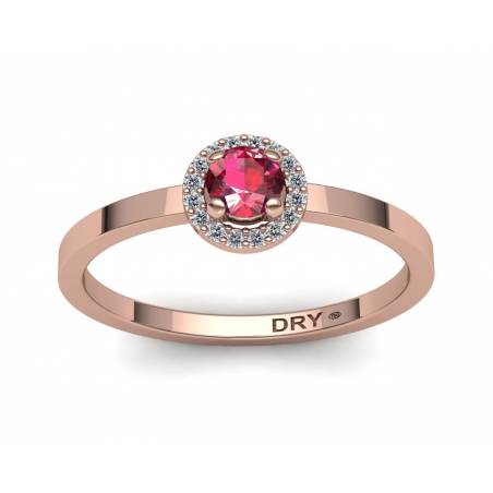 In this ring we have set a 3.5mm brilliant cut ruby surrounded by diamonds. The central stone is surrounded by 16 0.90mm brilliant-cut diamonds set in pavé that bring great beauty to this ring. We can make this ring with other stones.