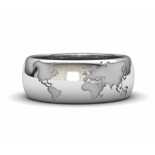 Crafted with high-quality sterling silver, this ring features a detailed engraving of the world map, showcasing continents, countries, and key geographical details. Each line and contour has been carefully engraved to provide an authentic and precise representation of our world.